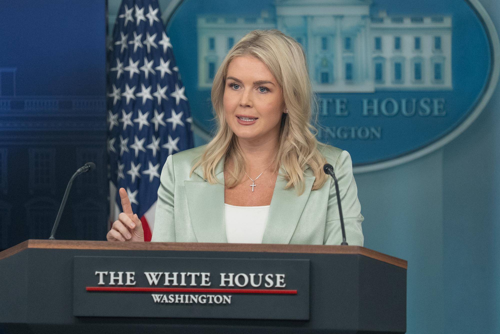 9月9日,在美国首都华盛顿白宫,美国白宫新闻秘书莱维特在记者会上讲话。新华社记者胡友松摄白宫“否认”加“力挺”