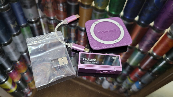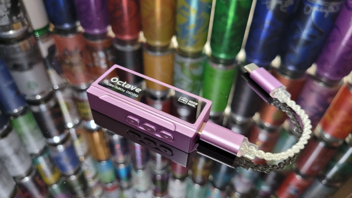 不同设备切换聆听后,个人感觉Octave属于能够经得起高灵敏度耳机对噪音的挑剔,也能应付得来复杂驱动条件要求的混合耳机,甚至于我用它接驳耳挂式耳机及头戴式耳机也能驱动的有模有样,最关键的是出声质感不粗糙,颗粒细腻。单端模式下,实测风格与平衡口不算天差地别,更不是白送的摆设,实际测试在单端模式下,聆听欧美流行乐或者是摇滚乐,也别有一番风味,尤其搭配高质量的动圈耳机,我喜欢这样搭配然后听Billie Eilish的个人循环,那首听烂了的《Bad Guy》在Octave高质量的低频质感表现加持下,丰富的极低频细节,以及让动圈耳机振膜产生足够下潜和饱胀紧实质感的打击效果,这些都为“小声蹦迪”的氛围增砖添瓦,明明没有用音染加低频氛围,却也使得这首歌曲更为动人,节奏感非常过瘾。此外,在抒情歌曲表现方面,女声的声线不会太薄,扎实高密度的声线刻画,搭配高素质的细节还原,也是具备一定毒性的,当然你也可搭配女毒耳塞进行拓展,我觉得Octave的本底调音风格还是比较百搭的,万金油属于是。
