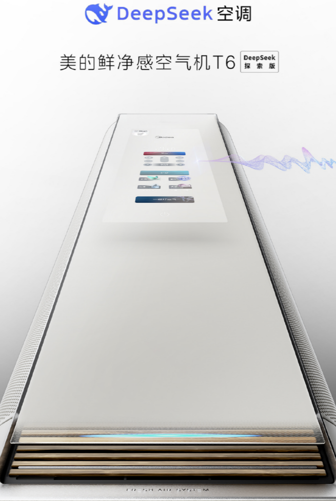 与此同时,AI也在深度重构家电的产品逻辑。例如,美的鲜净感空气机T6搭载了DeepSeek R1满血版大模型,其核心并非语音控制这类浅层交互,而是通过对室内温、湿、净、鲜等多维度空气质量的持续感知与学习,自动完成复杂的调节决策,实现“一键好空气”。这标志着AI在家电中的应用,正从执行固定指令,迈向基于复杂环境感知的自主化、个性化服务。